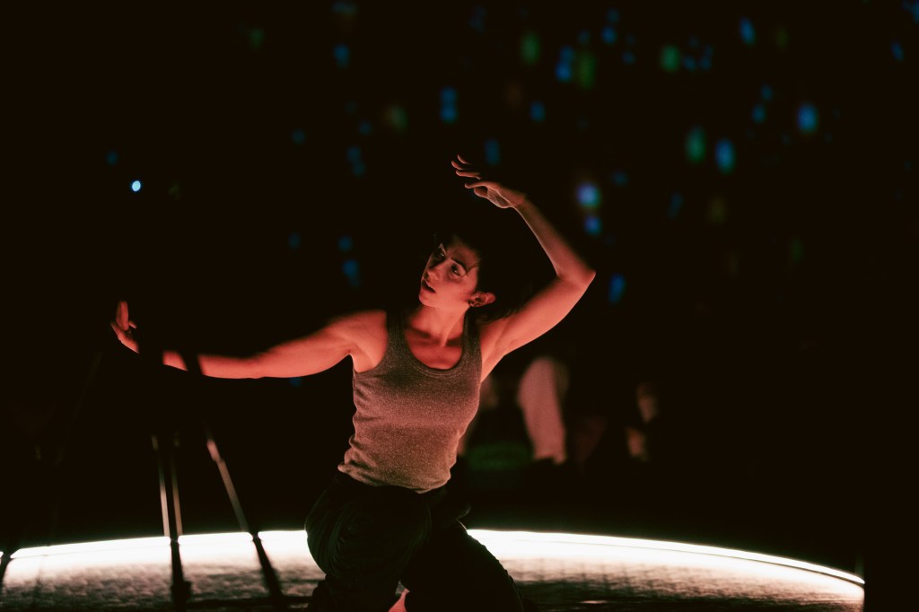 Allison Moore’s CLOUD BODIES is a generative immersive experience in the Satosphere combining dance and technology. Using live volumetric capture, dancer Lucy Fandel’s choreography is tracked by sensors during the performance. The geometric metadata collected is processed and reconstructed in the virtual environment projected on the dome where Fandel’s body and movements merge with digital landscapes. The elements are imaged in point clouds, a system of data representation organized in three-dimensional spaces.